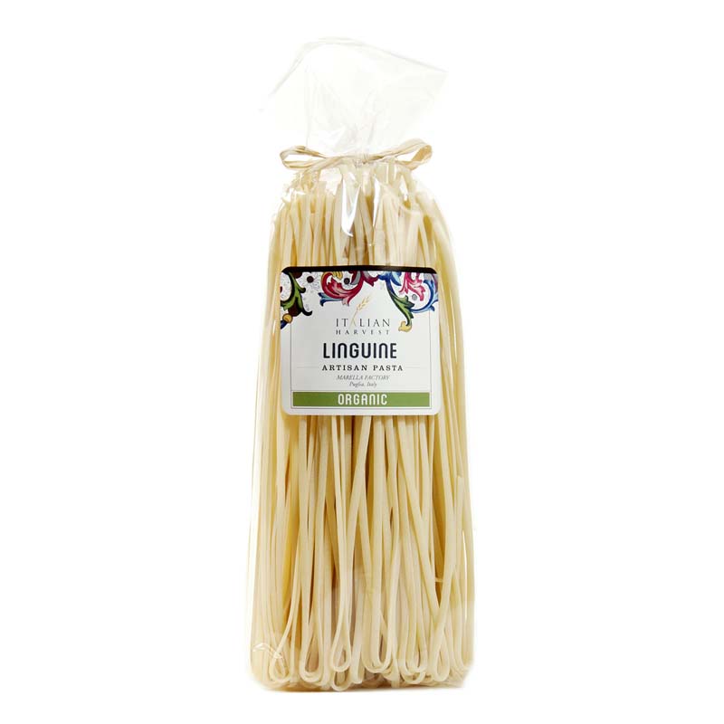 Because these linguine are hung by hand before drying, their lengths are irregular. Their course texture hold any sauce well. Also available in bulk! *Organic Marella Pasta imported by Italian Harvest is a 2013 Silver sofi Award Winner for "Outstanding Product Line"