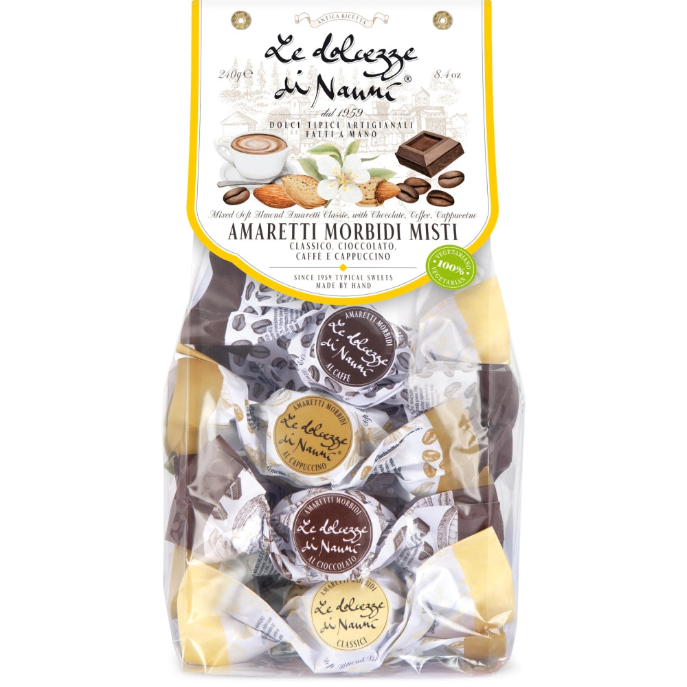 These delicious soft, chewy Amaretti cookies are made in the Nanni family pastry shop near Siena,Tuscany. Four flavors, each individually wrapped - Classic, Chocolate, Coffee and Cappuccino.